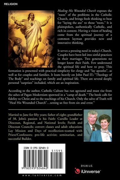 Healing His Wounded Church exposes the "roots" of the problems in the Catholic Church, and brings fresh thinking to bear for "laying the axe" to those "roots." It is plainspoken, authentically Catholic, and rich in content. Having a vision of healing come from the spiritual journey of a common layman provides new and innovative thinking. It serves a pressing need in today's Church. Couples have been led into sinful practices in their marriages. Two generations no longer know their Faith. Few understand the spiritual life and how to pray. This formation is presented with practical simplicity for clergy and "lay apostles", as well as for couples and families. It leans heavily on John Paul II's "Theology of The Body" and teachings on family and spiritual life. There are several deeply personal "surprises" included, which are an inspiration. According to the author, Catholic Culture has run aground and must rise from the ashes of Pagan Modernism spawned in a "camp of death." The book calls for fidelity to Christ and to the teachings of his Church. Only the salve of Truth will "Heal His Wounded Church"...setting us free from sin and error."