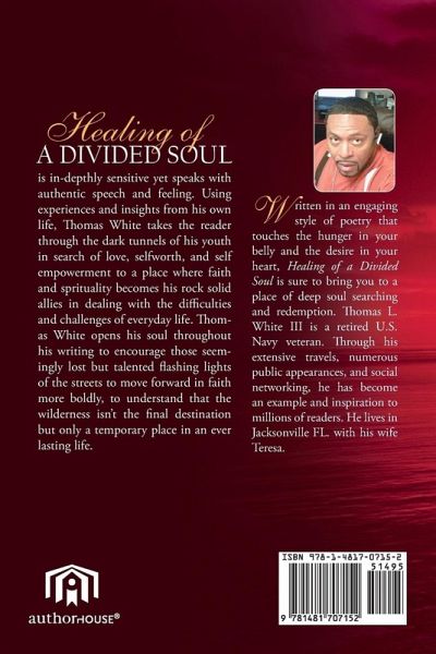 There is a distinctive way each word earns its space in Thomas White's first book of poetry and quotes, "Healing of a Divided Soul." They fit accordingly after the mastermind of their structure. Giving you imagery in each piece, and taking you on a journey deep inside the soul of a man determined to overcome life difficulties through faith and commitment. "Healing of a Divided Soul" uniquely shares his story through poetry of living and escaping life on the bottom tier of the violent inner-city streets of Detroit. We all understand how the word dysfunction has become synonymous to a world that knows normal is not a given. Though the past may be a part of who we are, we can't let it dictate the kind of person we want to become. Remember the heaviest chain we will ever wear is the chain that stops us from changing! For once your mind is free the rest will follow! Healing of a Divided Soul is sure to cleanse, restore, and bring the reader unprecedented wisdom from a Soul no more divided.