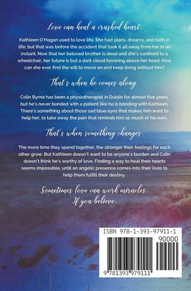 Love can heal a crushed heart. Kathleen O'Hagan used to love life. She had plans, dreams, and faith in life; but that was before the accident that took it all away from her in an instant. Now that her beloved brother is dead and she's confined to a wheelchair, her future is but a dark cloud hovering above her head. How can she ever find the will to move on and keep living without him? That's when he comes along. Colin Byrne has been a physiotherapist in Dublin for almost five years, but he's never bonded with a patient like he is bonding with Kathleen. There's something about those sad blue eyes that makes him want to help her, to take away the pain that reminds him so much of his own. That's when something changes. The more time they spend together, the stronger their feelings for each other grow. But Kathleen doesn't want to be anyone's burden and Colin doesn't think he's worthy of love. Finding a way to heal their hearts seems impossible, until an angelic presence comes into their lives to help them fulfill their destiny. Sometimes love can work miracles—if you believe.