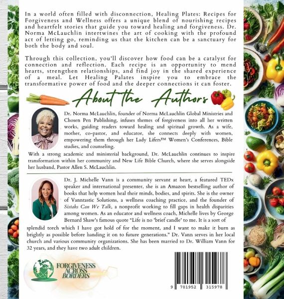 Dr. Norma McLauchlin, founder of Norma McLauchlin Global Ministries and Chosen Pen Publishing, infuses themes of forgiveness into all her written works, guiding readers toward healing and spiritual growth. As a wife, mother, co-pastor, and educator, she connects deeply with women, empowering them through her Lady Lifers(TM) Women's Conferences, Bible studies, and counseling. With a strong academic and ministerial background, Dr. McLauchlin continues to inspire transformation within her community and New Life Bible Church, where she serves alongside her husband, Pastor Allen S. McLauchlin. Dr. J. Michelle Vann is a community servant at heart, a featured TEDx speaker and international presenter, she is an Amazon bestselling author of books that help women heal their minds, bodies, and spirits. She is the owner of Vanntastic Solutions, a wellness coaching practice, and the founder of Sistahs Can We Talk, a nonprofit working to fill gaps in health disparities among women. As an educator and wellness coach, Michelle lives by George Bernard Shaw's famous quote "Life is no 'brief candle' to me. It is a sort of splendid torch which I have got hold of for the moment, and I want to make it burn as brightly as possible before handing it on to future generations." Dr. Vann serves in her local church and various community organizations. She has been married to Dr. William Vann for 32 years, and they have two adult children.