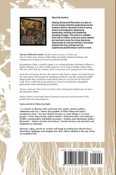 HARRIET H. SMITH, idealistic young nurse sets off for the Yale in China school of nursing and its hospital to apply her recent nursing qualification and build her knowledge and skills and pursue her humanitarian causes. Upon arriving she discovers much more than she thought possible: A fascinating country and culture offering adventure Professional challenges aplenty. A "strange" society and culture she soon learns to appreciate and love. A Roaring '20's social life, of dinners, dances, romance, challenged social mores and booze. Society in disarray with civic unrest, chaotic politics, militarism and war. Harriet questioning life and future. Enjoy, marvel at, wonder and laugh in reading how Harriet faces all ofthesechallenges. Discover how Harriet became so many things to so many people: Fiery, flag waving radical. Dedicated nurse and educator Gifted raconteur Keen observer of her life and times Adventuress Inspiration to thousands