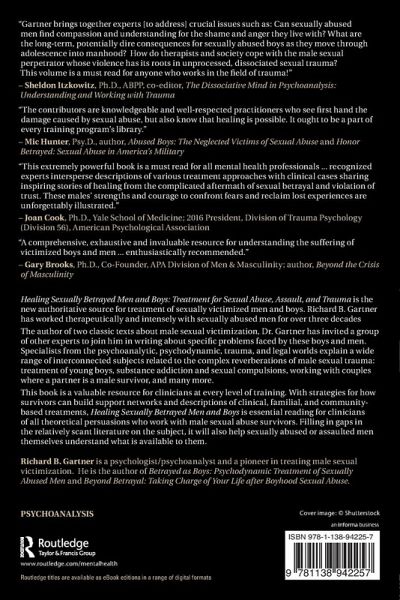 This book is a valuable resource for clinicians at every level of training. With strategies for how survivors can build support networks and descriptions of clinical, familial, and community-based treatments, Healing Sexually Betrayed Men and Boys is essential reading for clinicians of all theoretical persuasions who work with male sexual abuse survivors. Filling in gaps in the relatively scant literature on the subject, it will also help sexually abused or assaulted men themselves understand what is available to them.
