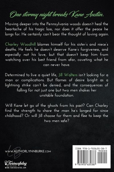 Not all storms bring fear. Some cleanse wounds and heal souls. One stormy night breaks Kane Austin. Moving deeper into the Pennsylvania woods doesn't heal the heartache of his tragic loss, nor does it offer the peace he longs for. He certainly can't bear the thought of loving again. Charley Woodhill blames himself for his sister's and niece's deaths. He feels he doesn't deserve Kane's forgiveness, and especially not his love, but that doesn't keep him from watching over his best friend from afar, coveting what he can never have. Determined to live a quiet life, Jill Walters isn't looking for a man or complications. But flames of desire bright as a lightning strike can't be denied, and the consequences of falling for not just one but two men shake her unstable foundation. Will Kane let go of the ghosts from his past? Can Charley find the strength to share the man he's longed for since childhood? Or will Jill choose for them and flee to keep the two men safe?