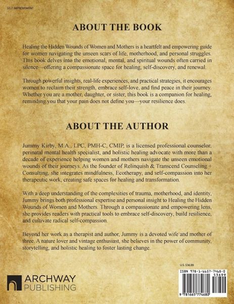Healing the Hidden Wounds of Women and Mothers is a heartfelt and empowering guide for women navigating the unseen scars of life, motherhood, and personal struggles. This book delves into the emotional, mental, and spiritual wounds often carried in silence-offering a compassionate space for healing, self-discovery, and renewal. Through powerful insights, real-life experiences, and practical strategies, it encourages women to reclaim their strength, embrace self-love, and find peace in their journey. Whether you are a mother, daughter, or sister, this book is a companion for healing, reminding you that your pain does not define you-your resilience does.
