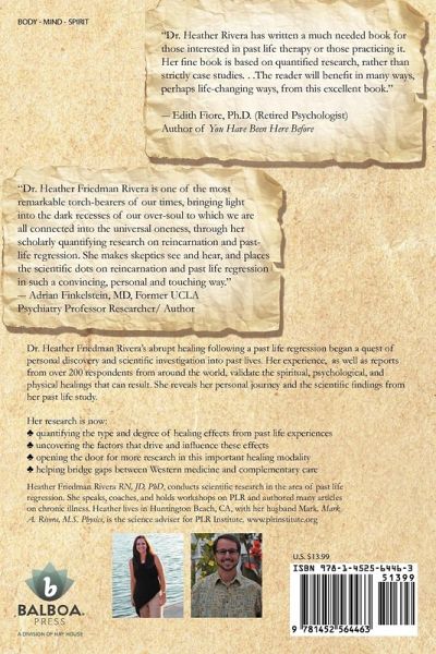 "It is important to document the validity of past life regression therapy. Heather Rivera's research has made an important contribution to this field, and I applaud her work."-Brian L. Weiss, M.D., author of Many Lives, Many Masters "Dr. Heather Rivera has written a much needed book for those interested in past life therapy or those practicing it. Her fine book is based on quantified research, rather than strictly case studies. . .The reader will benefit in many ways, perhaps life-changing ways, from this excellent book." ? Edith Fiore, Ph.D. (Retired Psychologist) Author of You Have Been Here Before "Dr. Heather Friedman Rivera is one of the most remarkable torch-bearers of our times, bringing light into the dark recesses of our over-soul to which we are all connected into the universal oneness, through her scholarly quantifying research on reincarnation and past-life regression. She makes skeptics see and hear, and places the scientific dots on reincarnation and past life regression in such a convincing, personal and touching way." ? Adrian Finkelstein, MD, Former UCLA Psychiatry Professor Researcher/ Author Dr. Heather Friedman Rivera’s abrupt healing following a past life regression began a quest of personal discovery and scientific investigation into past lives. Her experience, as well as reports from over 200 respondents from around the world, validate the spiritual, psychological, and physical healings that can result. She reveals her personal journey and the scientific findings from her past life study. Her research is now: ♣ quantifying the type and degree of healing effects from past life experiences ♣ uncovering the factors that drive and influence these effects ♣ opening the door for more research in this important healing modality ♣ helping bridge gaps between Western medicine and complementary care
