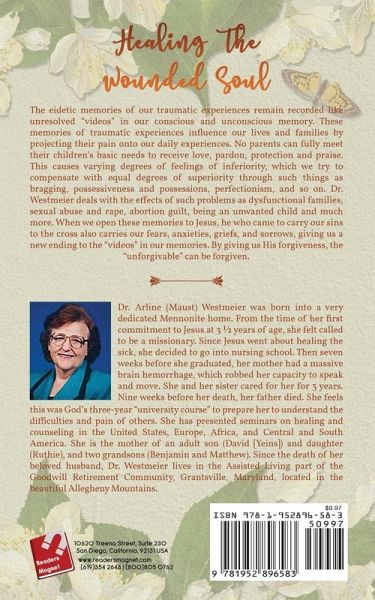 Dr. Arline (Maust) Westmeier was born into a very dedicated Mennonite home. From the time of her first commitment to Jesus at 3¿ years of age, she felt called to be a missionary. Dr. Westmeier went to language school in Costa Rica where another student, Karl W. Westmeier, from Germany was preparing to go to Colombia, SA. They were married and spent the next 21 years in Colombia where their two children were born. She is a speaker, author and counselor who has helped men and women around the globe find healing for their past hurts. A registered nurse, certified Christian Counselor and Traumatologist, she holds undergraduate and graduate degrees in Bible, Psychology and Theology and a doctorate in Psychology and Religion (Drew University, Madison, NJ). She has presented seminars on healing and counseling in the United States, Europe, Africa, and Central and South America. She continued ministering until her death on November 11, 2021.