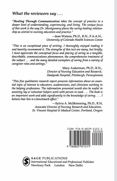 Montgomery offers a theory of caring, grounded in both clinical practice and theory, that advances caring as an intrinsic part of nursing. Demonstrating the depth and complexity of caring communication, she describes the qualities and behavioral manifestations needed to communicate caring to the patient, while admitting the emotional risks facing caregivers. A model is presented which describes the support necessary within the health care system to sustain this level of communication and to help caregivers cope with these emotional demands.