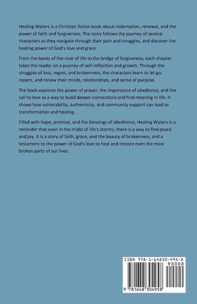 Healing Waters is a Christian fiction book about redemption, renewal, and the power of faith and forgiveness. The story follows the journey of several characters as they navigate through their pain and struggles, and discover the healing power of God's love and grace. From the banks of the river of life to the bridge of forgiveness, each chapter takes the reader on a journey of self-reflection and growth. Through the struggles of loss, regret, and brokenness, the characters learn to let go, repent, and renew their minds, relationships, and sense of purpose. The book explores the power of prayer, the importance of obedience, and the call to love as a way to build deeper connections and find meaning in life. It shows how vulnerability, authenticity, and community support can lead to transformation and healing. Filled with hope, promise, and the blessings of obedience, Healing Waters is a reminder that even in the midst of life's storms, there is a way to find peace and joy. It is a story of faith, grace, and the beauty of brokenness, and a testament to the power of God's love to heal and restore even the most broken parts of our lives.