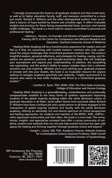 This incisive work explores the multifaceted struggles of graduate students, confronting burnout, political complexity, and societal crises like COVID-19 epidemic, racism, homophobia, transphobia, patriarchy, white supremacy, xenophobia, and ableism. The mass exodus of workers during the Great Resignation in the United States left many grappling with unemployment, debt, and existential uncertainty, feeling devalued and alienated in academic environments. The RACE Mentoring-Health and Spirituality group emerged as a pivotal initiative, providing essential support in the face of these challenges. The book highlights the critical issue of declining enrollment and completion rates in graduate programs leading to a staffing crisis in higher education. Students from marginalized communities are disproportionately impacted. In response, resilient students have formed supportive networks, showcasing their ability to adapt and thrive despite adversity. This volume of the RACE Mentoring series focuses on these students' survival strategies, self-care techniques, and insights into healing both personally and professionally. The contributors, sharing their diverse experiences, offer practical advice for navigating challenging landscapes. This work serves as a comprehensive guide for healing, growth, and finding inspiration amidst adversity, symbolizing a beacon of hope and resilience for those facing similar challenges. It is a testament to the power of community and perseverance in overcoming significant obstacles.