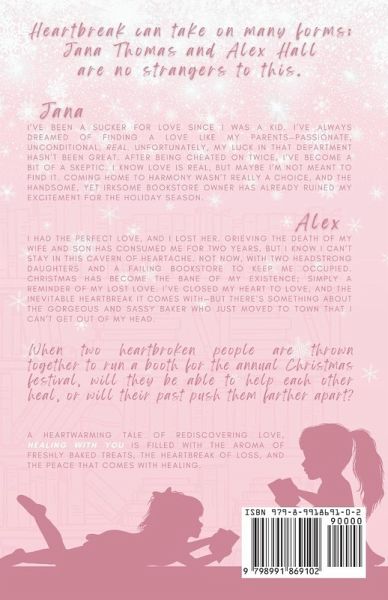 Heartbreak can take on many forms; Jana Thomas and Alex Hall are no strangers to this. JANA I've been a sucker for love since I was a kid. I've always dreamed of finding a love like my parents-passionate, unconditional, real. Unfortunately, my luck in that department hasn't been great. After being cheated on twice, I've become a bit of a skeptic. I know love is real, but maybe I'm not meant to find it. Coming home to Harmony wasn't really a choice, and the handsome yet irksome bookstore owner has already ruined my excitement for the holiday season. ALEX I had the perfect love, and I lost her. Grieving the death of my wife and son has consumed me for two years, but I know I can't stay in this cavern of heartache. Not now, with two headstrong daughters and a failing bookstore to keep me occupied. Christmas has become the bane of my existence; simply a reminder of my lost love. I've closed my heart to love, and the inevitable heartbreak it comes with-but there's something about the gorgeous and sassy baker who just moved to town that I can't get out of my head. When two heartbroken people are thrown together to run a booth for the annual Christmas festival, will they be able to help each other heal, or will their past push them farther apart? A heartwarming tale of rediscovering love, Healing with You is filled with the aroma of freshly baked treats, the heartbreak of loss, and the peace that comes with healing.