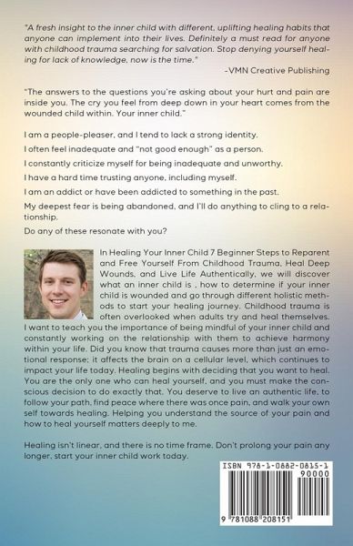 "The answers to the questions you're asking about your hurt and pain are inside you. The cry you feel from deep down in your heart comes from the wounded child within. Your inner child." I am a people-pleaser, and I tend to lack a strong identity. I often feel inadequate and "not good enough" as a person. I constantly criticize myself for being inadequate and unworthy. I have a hard time trusting anyone, including myself. I am an addict or have been addicted to something in the past. My deepest fear is being abandoned, and I'll do anything to cling to a relationship. Do any of these resonate with you? In Healing Your Inner Child 7 Beginner Steps to Reparent and Free Yourself From Childhood Trauma, Heal Deep Wounds, and Live Life Authentically ,we will discover what an inner child is, how to determine if your inner child is wounded and go through different holistic methods to start your healing journey. Childhood trauma is often overlooked when adults try and heal themselves. I want to teach you the importance of being mindful of your inner child and constantly working on the relationship with them to achieve harmony within your life. Did you know that trauma causes more than just an emotional response; it affects the brain on a cellular level, which continues to impact your life today. Healing begins with deciding that you want to heal. You are the only one who can heal yourself, and you must make the conscious decision to do exactly that. You deserve to live an authentic life, to follow your path, find peace where there was once pain, and walk your own self towards healing. Helping you understand the source of your pain and how to heal yourself matters deeply to me. Healing isn't linear, and there is no time frame. Don't prolong your pain any longer, start your inner child work today.