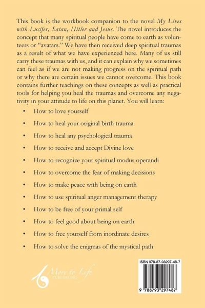 This book is the workbook companion to the novel My Lives with Lucifer, Satan, Hitler and Jesus. The novel introduces the concept that many spiritual people have come to earth as volunteers or "avatars." We have then received deep spiritual traumas as a result of what we have experienced here. Many of us still carry these traumas with us, and it can explain why we sometimes can feel as if we are not making progress on the spiritual path or why there are certain issues we cannot overcome. This book contains further teachings on these concepts as well as practical tools for helping you heal the traumas and overcome any negativity in your attitude to life on this planet. You will learn: How to love yourself How to heal your original birth trauma How to heal any psychological trauma How to receive and accept Divine love How to recognize your spiritual modus operandi How to overcome the fear of making decisions How to make peace with being on earth How to use spiritual anger management therapy How to be free of your primal self How to feel good about being on earth How to free yourself from inordinate desires How to solve the enigmas of the mystical path