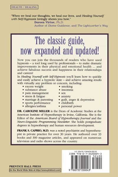 Overcome nervous tension, pain, fatigue, insomnia, depression and addictive behaviors with these simple techniques. Now you can join the thousands of readers who have used hypnosis-a tool long used by professionals-to make dramatic improvements in their physical and emotional health . . . and achieve fabulous success and happiness in their relationships and career! In Healing Yourself with Self-Hypnosis you'll learn how to quickly and easily achieve a hypnotic state-and achieve amazing results with virtually any problems or concern, including: excess weight, substance abuse, pain management, smoking, childbirth, and anxiety.
