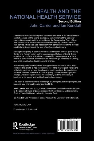 Reviewing recent health care policy in the NHS and setting health policy in both an historical and modern context, Carrier and Kendall firmly locate the NHS in the context of the welfare state.