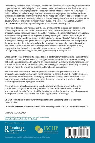 Health at Work takes some of the most powerful and taken-for-granted discourses of organization and explores what each might mean for the construction of the healthy employee. Not only does it offer a fresh and challenging approach to the topic of health at work, it also examines several core topics at the heart of contemporary research and practice, including technology, innovation, ageing and emotions.