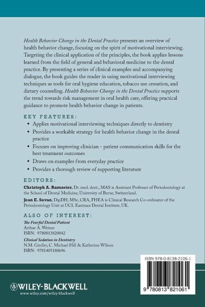 Health Behavior Change in the Dental Practice presents an overview of health behavior change, focusing on the spirit of motivational interviewing. Targeting the clinical application of the principles, the book applies lessons learned from the field of general and behavioral medicine to the dental practice. By presenting a series of clinical examples and accompanying dialogue, the book guides the reader in using motivational interviewing techniques as tools for oral hygiene education, tobacco use cessation, and dietary counseling. Health Behavior Change in the Dental Practice supports the trend towards risk management in oral health care, offering practical guidance to promote health behavior change in patients.