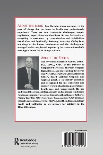 Few areas in life have experienced the rapid pace of change that has been the experience of health care. It's an area where nothing feels "safe" and everything is threatened with reexamination and redefinition. Accompanying this situation is a new appreciation for the human spirit and the gift of things spiritual, including the soul of the work place. Addressing this situation is a vital new book "Health Care and Spirituality: Listening, Assessing, Caring" an anthology of the human predicament, the health care professional's story and the health care work place. "Health Care and Spirituality" explores this area that is continually being introduced to new treatments, new challenges, new people, new regulations, new expectations, and new time limits.