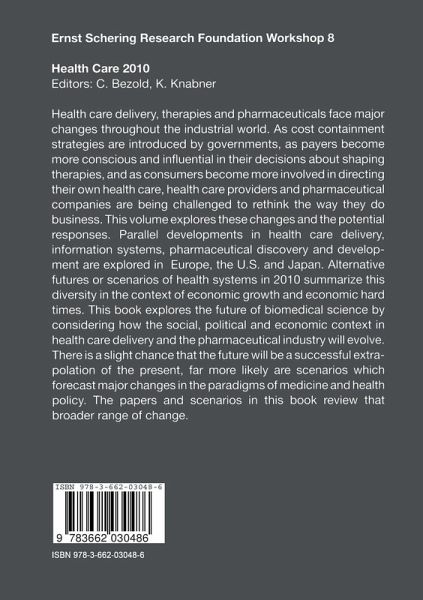 Health care delivery, therapies and pharmaceuticals face major changes throughout the industrial world. As cost containment strategies are introduced by governments, as payers become more conscious and influential in their decisions about shaping therapies, and as consumers become more involved in directing their own health care, health care providers and pharmaceutical companies are being challenged to rethink the way they do business. This volume explores these changes and the potential responses. Parallel developments in health care delivery, information systems, pharmaceutical discovery and development are explored in Europe, the U.S. and Japan. Alternative futures or scenarios of health systems in 2010 summarize this diversity in the context of economic growth and economic hard times. This book explores the future of biomedical science by considering how the social, political and economic context in health care delivery and pharmaceutical industry will evolve. There is a slight chance that the future will be a successful extrapolation of the present, far more likely are scenarios which forecast major changes in the paradigms of medicine and health policy. The papers and scenarios in this book review that broader range of change.
