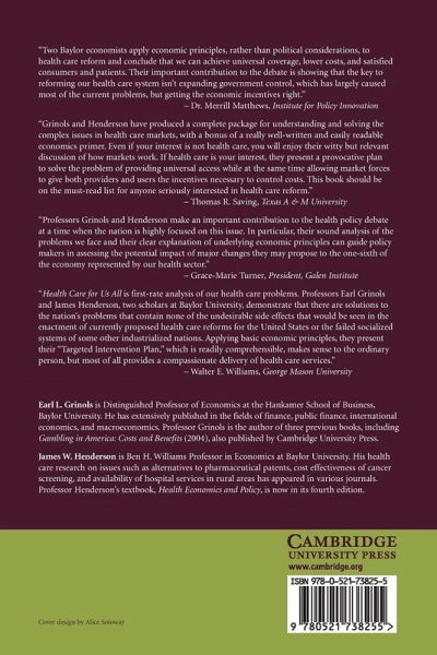 Part I. Goals and Working Principles: 1. Introduction 2. Goals 3. Principles Part II. Background Economics and Ethics: 4. Markets, VPOs, government 5. Education, charity, and the American ethical base Part III. Application: 6. Why government in health care? 7. Insurance 8. The new Baylor plan Part IV. Protective Measures: 9. Forestalling free-riders 10. Preserving prices 11. Inducing innovation 12. Summary.