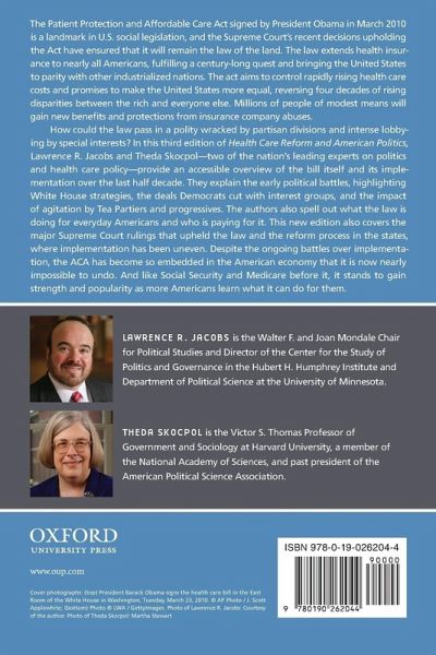 How did such a bold reform effort pass in a polity wracked by partisan divisions and intense lobbying by special interests? What does Affordable Care mean-and what comes next? In this updated edition of Health Care Reform and American Politics: What Everyone Needs to Know®, Lawrence R. Jacobs and Theda Skocpol-two of the nation's leading experts on politics and health care policy-provide a concise and accessible overview. They explain the political battles of 2009 and 2010, highlighting