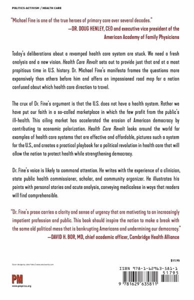 The U.S. does not have a health system. Instead we have market for health-related goods and services, a market in which the few profit from the public’s ill-health. Health Care Revolt looks around the world for examples of health care systems that are effective and affordable, pictures such a system for the U.S., and creates a practical playbook for a political revolution in health care that will allow the nation to protect health while strengthening democracy. Dr. Fine writes with the wisdom of a clinician, the savvy of a state public health commissioner, the precision of a scholar, and the energy and commitment of a community organizer.