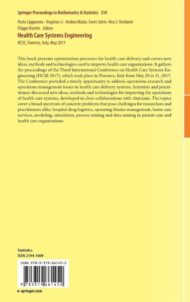 This book presents statistical processes for health care delivery and covers new ideas, methods and technologies used to improve health care organizations. It gathers the proceedings of the Third International Conference on Health Care Systems Engineering (HCSE 2017), which took place in Florence, Italy from May 29 to 31, 2017. The Conference provided a timely opportunity to address operations research and operations management issues in health care delivery systems. Scientists and practitioners discussed new ideas, methods and technologies for improving the operations of health care systems, developed in close collaborations with clinicians. The topics cover a broad spectrum of concrete problems that pose challenges for researchers and practitioners alike: hospital drug logistics, operating theatre management, home care services, modeling, simulation, process mining and data mining in patient care and health care organizations.
