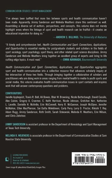Chapter 1: Media Framing and Athlete Mental Health David Cassilo, Kennesaw State University Chapter 2: Media Framing, Sport, and Public Health Travis R. Bell, University of South Florida Janelle Applequist, University of South Florida Chapter 3: Developing a Rhetoric of Mental Health from a Communication and Sport Perspective Katherine L. Lavelle, University of Wisconsin-La Crosse Chapter 4: Corporate Social Responsibility and Health Promotion Campaigns among Major U.S. Professional Sporting Leagues Adam Rugg, Fairfield University Chapter 5: Parents and Child Communication and Health Risks in Sport: Joseph McGlynn, University of North Texas Chapter 6: Coach-Athlete Communication and Implications for Health Gregory A. Cranmer, Clemson University Rikishi T. Rey, Clemson University SaiDatta Mikkilineni, University of Alabama Chapter 7: Why Kinesiology and Athletics Departments Should Collaborate to Advance Health Equity Larry D. Proctor, Grambling State University Sarah Stokowski, Cl