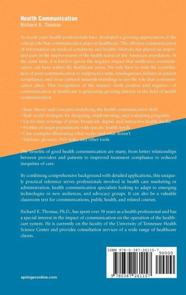From the reviews: "A single-authored introduction to the emerging field of health communication. ... This book outlines strategies for better communication between health care professionals and patients, as well as principles for developing health communication initiatives aimed at the general public. ... Recommended Readership: Health care professionals with a focus on health communication as a specialty, health care markets, and students in the fields of communication, public health, and health care administration." (Thomas C. Shives, Mayo Clinic Proceedings, Vol. 81 (5), May, 2006)