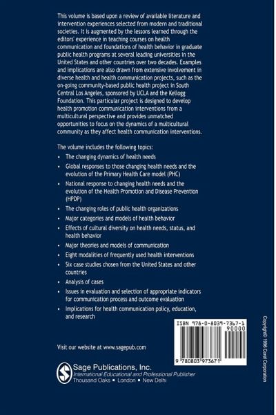 PART ONE: CONCEPTUAL FRAMEWORK Changing Health Needs - Snehendu B Kar, Rina Alcalay with Shana Alex The Imperative for a Multicultural Paradigm The Emergence of a New Public Health Paradigm in the United States - Snehendu B Kar, Rina Alcalay with Shana Alex The Evolution of Health Communication in the United States - Snehendu B Kar, Rina Alcalay with Shana Alex A Multicultural Society - Snehendu B Kar, Rina Alcalay with Shana Alex Facing a New Culture Communicating with Multicultural Populations - Snehendu B Kar, Rina Alcalay with Shana Alex A Theoretical Framework PART TWO: HEALTH COMMUNICATION IN HIGH-RISK MULTICULTURAL POPULATIONS Childhood Unintentional Injury Prevention - Deborah Glik and Angela Mickalide Multicultural Perspectives The Usefulness of the