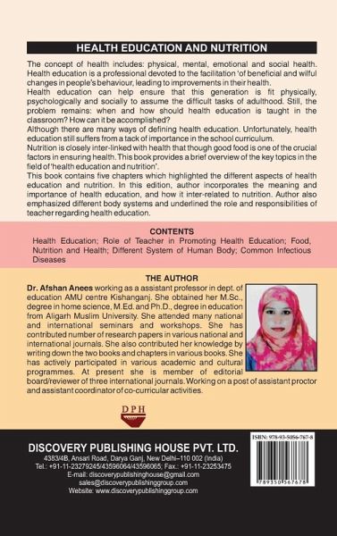 The concept of health includes: physical, mental, emotional and social health. Health education is a professional devoted to the facilitation 'of beneficial and wilful changes in people's behaviour, leading to improvements in their health.This book provides a brief overview of the key topics in the field of 'health education and nutrition'.