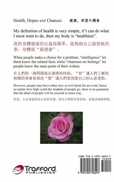My definition of health is very simple. If I can do what I mostly want to do, then my body is healthiest. When people make a choice for a problem, intelligence lets them know the related facts, while clearness on feelings lets people know the main point of their wishes. However, people may have either nice or evil intent for an event; hence, no matter how high the wisdom of people go, there is no guarantee that the ideal of people will be secured in some way.