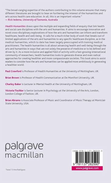 "Health Humanities provides a very valuable survey of the ways in which arts and humanities have historically contributed in the improvement of healthcare practices both in the UK and throughout the world. As a manifesto calling for the expansion of a new discipline, it clearly highlights unexplored areas of interest for future academic studies as well as potential spaces of engagement for healthcare practitioners interested in potential new approaches to health and care." (Mathieu Donner, The British Society for Literature and Science, bsls.ac.uk, July, 2017)