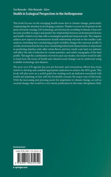 The post-2015 UN agenda has just put forward, and tremendous efforts have been started to develop and establish appropriate indicators to achieve the SDG goals. This book will also serve as a useful guide for creating such an indicator associated with health and planning, in line with the Ecohealth concept, the major tone of this book. With the increasing and pressing needs for adaptation to climate change, as well as societal change, this would be a very timely publication in this trans-disciplinary field.