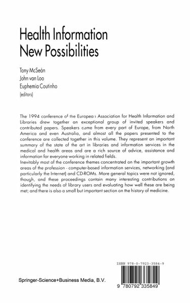 The 1994 conference of the European Association for Health Information and Libraries drew together an exceptional group of invited speakers and contributed papers. Speakers came from every part of Europe, from N. America, and even from Australia, and almost all the papers presented are collected in this volume. They represent an important summary of the state of the art in libraries and information services in the medical and health areas and are a rich source of advice, assistance and information for everyone working in related fields.