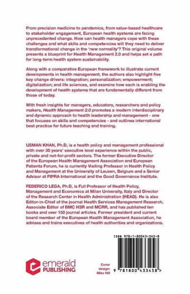 Usman Khan, Ph.D, is a health policy and management professional with over 30 years' executive level experience within the public, private and not-for-profit sectors. The former Executive Director of the European Health Management Association and European Patients Forum, he is currently Visiting Professor in Health Policy and Management at the University of Leuven, Belgium and a Senior Advisor at FIPRA International and the Good Governance Institute. Federico Lega, Ph.D, is Full Professor of Health Policy, Management and Economics at Milan University, Italy and Director of the Research Center in Health Administration (HEAD). He is also Editor-in-Chief of the journal Health Services Management Research, Associate Editor of BMC HSR and MCRR, and has published ten books and over 150 journal articles. Former president and current board member of the European Health Management Association, he advises and trains executives of health authorities and organizations.