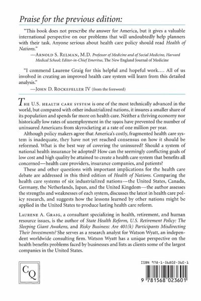 Health of Nations provides detailed overviews of the health care systems of the United States, Canada, Germany, Japan, the Netherlands, and the United Kingdom and compares and contrasts the health care systems of these five other with the United States. In this thoroughly revised third edition, author Laurene Graig analyzes the health care delivery systems in each of these countries and makes expert and insightful assessments about what works... what doesn't work... and what promising new ideas are now being tested. Health of Nations provides an excellent cross-national comparison of the major healthcare systems in existence today. The book is an excellent reference guide for students of international policy or anyone seeking information on U.S. Health care reform.