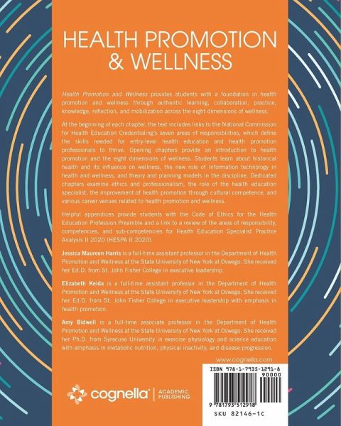 Health Promotion and Wellness provides students with a foundation in health promotion and wellness through authentic learning, collaboration, practice, knowledge, reflection, and mobilization across the eight dimensions of wellness. At the beginning of each chapter, the text includes links to the National Commission for Health Education Credentialing's seven areas of responsibilities, which define the skills needed for entry-level health education and health promotion professionals to thrive. Opening chapters provide an introduction to health promotion and the eight dimensions of wellness. Students learn about historical health and its influence on wellness, the new role of information technology in health and wellness, and theory and planning models in the discipline. Dedicated chapters examine ethics and professionalism, the role of the health education specialist, the improvement of health promotion through cultural competence, and various career venues related to health promotion and wellness. Helpful appendices provide students with the Code of Ethics for the Health Education Profession Preamble and a link to a review of the areas of responsibility, competencies, and sub-competencies for Health Education Specialist Practice Analysis II 2020 (HESPA II 2020).