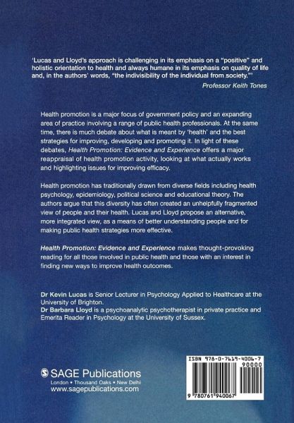 'In short, Lloyd and Lucas' approach is challenging in its emphasis on a 'positive' and holistic orientation to health and always humane in its emphasis on quality of life and, in the authors' words, 'the indivisibility of the individual from society' -Professor Keith Tones