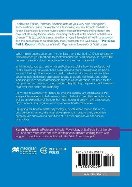 What are the processes that lead to illness and, inversely, to health and wellness? How can healthcare systems be improved to help prevent and manage illness? What are the primary political and lifestyle factors that can contribute to the promotion of public health and wellbeing? Part of the Palgrave Insights in Psychology series, this straight-forward text provides a well-rounded introduction to the topic of health psychology and delivers an overview of the key issues within the discipline. Readers can expect to learn about the various sub-disciplines that comprise this interdisciplinary area of psychology such as sociology, medicine and politics. Written for those who would like to gain a general understanding of the profession and discipline of the subject, this book introduces the main disorders at the heart of health psychology's focus such chronic illness, cancer, pain, stress, smoking cessation and weight loss. Further, Rodham examines the behavioural factors and wider political processes that affect the psychology of health, illness and healthcare in society. This title stands as part of the Insights series edited by Nigel Holt and Rob Lewis, containing well-rounded, quick guides to the cornerstone theories, main topics and theoretical perspectives of their subjects and are useful for pre-undergraduate students looking to find incisive introductions to subjects that they may be considering for undergraduate study or those looking for helpful preparatory reading for undergraduate modules in the prospective subject.