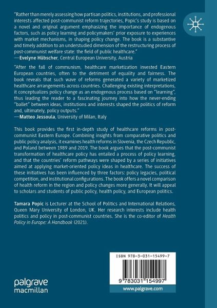 This book provides the first in-depth study of healthcare reforms in post-communist Eastern Europe. Combining insights from comparative politics and public policy analysis, it examines health reforms in Slovenia, the Czech Republic, and Poland between 1989 and 2019. The book argues that the post-communist transformation of healthcare policy has entailed a process of policy learning, and that the countries' reform pathways were shaped by a series of initiatives aimed at applying market-oriented policy ideas in healthcare. The success of these initiatives has been influenced by three factors: policy legacies, political competition, and institutional configurations. The book offers a novel comparison of health reform in the region and policy changes more generally. It will appeal to scholars and students of public policy, health policy, and European politics.