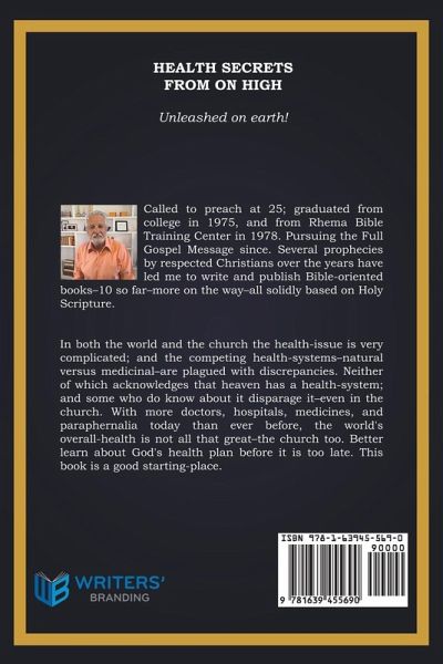 Called to preach at 25; graduated from college in 1975, and from Rhema Bible Training Center in 1978. Pursuing the Full Gospel Message since. Several prophecies by respected Christians over the years have led me to write and publish Bible-oriented books-10 so far-more on the way-all solidly based on Holy Scripture. In both the world and the church the health-issue is very complicated; and the competing health-systems-natural versus medicinal-are plagued with discrepancies. Neither of which acknowledges that heaven has a health-system; and some who do know about it disparage it-even in the church. With more doctors, hospitals, medicines, and paraphernalia today than ever before, the world's overall-health is not all that great-the church too. Better learn about God's health plan before it is too late. This book is a good starting-place.