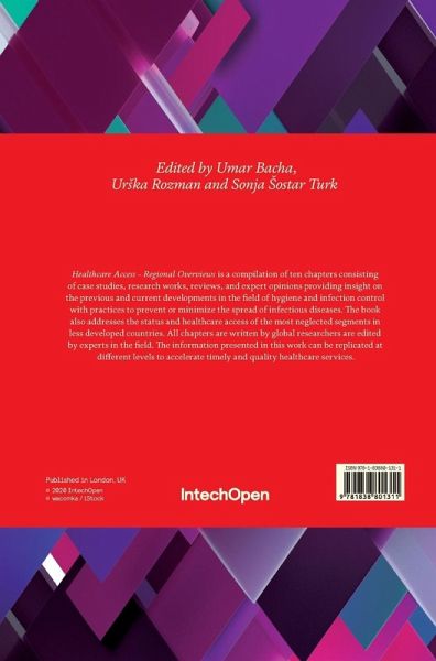 Healthcare Access - Regional Overviews is a compilation of ten chapters consisting of case studies, research works, reviews, and expert opinions providing insight on the previous and current developments in the field of hygiene and infection control with practices to prevent or minimize the spread of infectious diseases. The book also addresses the status and healthcare access of the most neglected segments in less developed countries. All chapters are written by global researchers are edited by experts in the field. The information presented in this work can be replicated at different levels to accelerate timely and quality healthcare services.