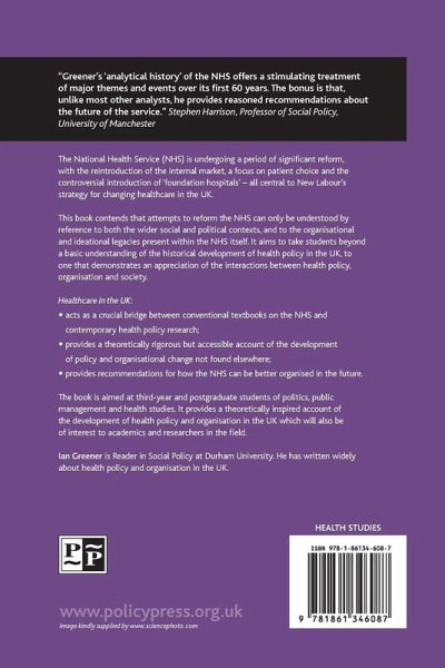 This book contends that attempts to reform the NHS can only be understood by reference to both the wider social and political context, and to the organisational legacies present within the NHS itself. It aims to give students an understanding that demonstrates an appreciation of the interactions between health policy, organisation and society.