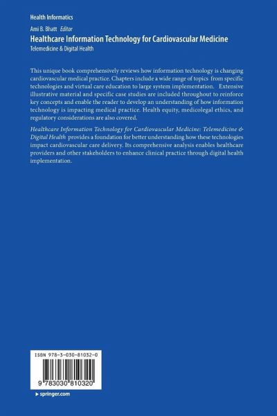 This unique book comprehensively reviews how information technology is changing cardiovascular medical practice. Chapters include a wide range of topics from specific technologies and virtual care education to large system implementation. Extensive illustrative material and specific case studies are included throughout to reinforce key concepts and enable the reader to develop an understanding of how information technology is impacting medical practice. Health equity, medicolegal ethics, and regulatory considerations are also covered. Healthcare Information Technology for Cardiovascular Medicine: Telemedicine & Digital Health provides a foundation for better understanding how these technologies impact cardiovascular care delivery. Its comprehensive analysis enables healthcare providers and other stakeholders to enhance clinical practice through digital health implementation.