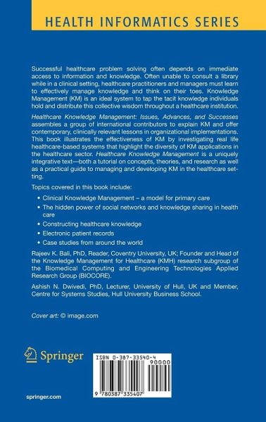 Knowledge Management (KM) holds the key to this dilemma in the healthcare environment. KM places value on the tacit knowledge that individuals hold within an institution and often makes use of IT to free up the collective wisdom of individuals within an organization. Healthcare Knowledge Management: Issues, Advances and Successes will explore the nature of KM within contemporary healthcare institutions and associated organizations. It will provide readers with an understanding of approaches to the critical nature and use of knowledge by investigating healthcare-based KM systems. Designed to demystify the KM process and demonstrate its applicability in healthcare, this text offers contemporary and clinically-relevant lessons for future organizational implementations.