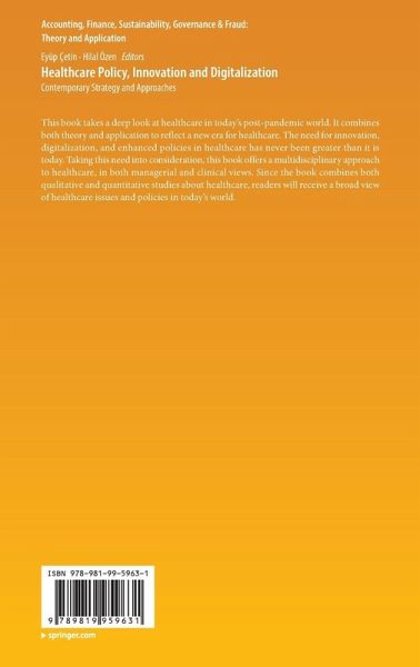This book takes a deep look at healthcare in today's post-pandemic world. It combines both theory and application to reflect a new era for healthcare. The need for innovation, digitalization, and enhanced policies in healthcare has never been greater than it is today. Taking this need into consideration, this book offers a multidisciplinary approach to healthcare, in both managerial and clinical views. Since the book combines both qualitative and quantitative studies about healthcare, readers will receive a broad view of healthcare issues and policies in today's world.