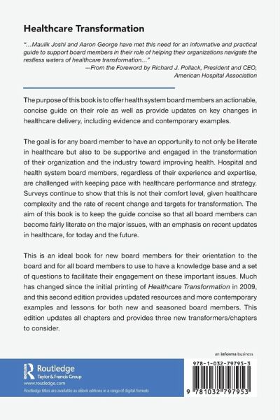 The purpose of this book is to offer health system board members an actionable, concise guide on their role as well as provide updates on key changes in health care delivery, including evidence and contemporary examples.