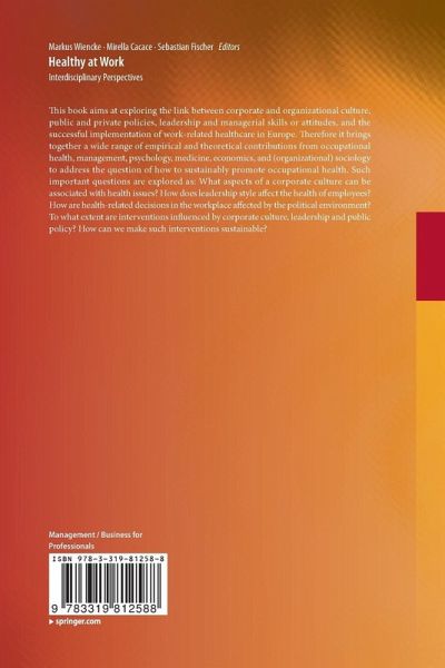 This book aims at exploring the link between corporate and organizational culture, public and private policies, leadership and managerial skills or attitudes, and the successful implementation of work-related healthcare in Europe. Therefore it brings together a wide range of empirical and theoretical contributions from occupational health, management, psychology, medicine, economics, and (organizational) sociology to address the question of how to sustainably promote occupational health. Such important questions are explored as: What aspects of a corporate culture can be associated with health issues? How does leadership style affect the health of employees? How are health-related decisions in the workplace affected by the political environment? To what extent are interventions influenced by corporate culture, leadership and public policy? How can we make such interventions sustainable?