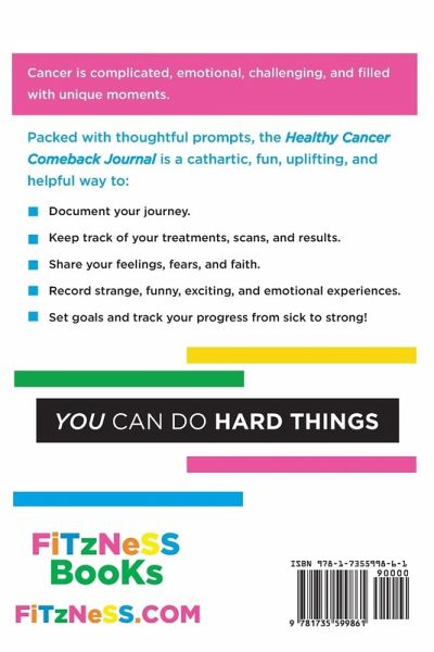The Healthy Cancer Comeback Journal is the perfect companion to Your Healthy Cancer Comeback: Sick to Strong. Cancer is complicated, emotional, challenging, and filled with unique moments. Packed with thoughtful prompts, you'll be able to keep track of your experiences in oncology, along with your thoughts, feelings, fears, faith, and facts about your care. Share your laughter, tears, hopes, strange side effects, and strawberry moments in this 300-page full-color book. You'll have the perfect place to document your strategies for health, fitness, exercise, nutrition, and progress on your way from sick to strong.