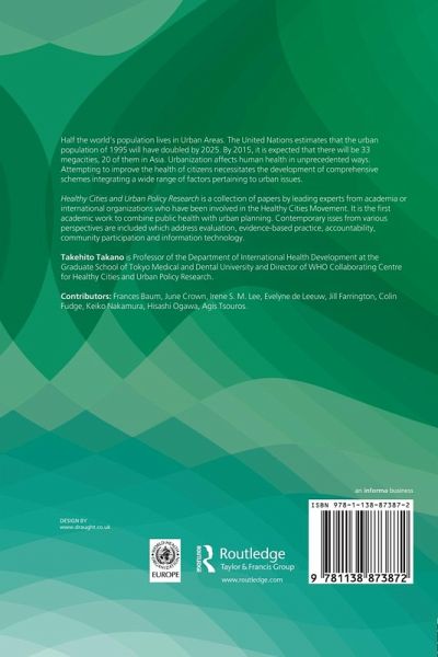 Healthy Cites and Urban Policy Research is a collection of papers by leading experts from academia or international organisations who have been involved in the Healthy Cities Movement. It is the first academic work to combine public health with urban planning. Contemporary issues from various perspectives are included which address evaluation, evidence-based practice, accountability, community participation and information technology.